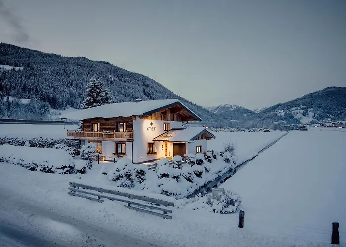 Oferujący Gościom transfer z/na lotnisko, 9-pokojowy Alpin Apartement G'Ret znajduje się 65 km od lotniska Salzburg. Centrum odnowy biologicznej Erlebnis-Therme Amadé jest w prawie 25 min piechotą, a Kolejka linowa Popolo 1 10 min piechotą od apartamentu.
